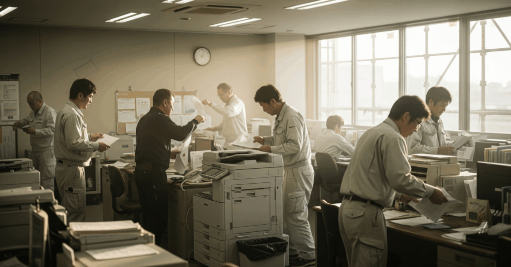 監督や職長が、毎朝早く来て印刷・仕分けする時間。この数十分があれば、もっと現場の安全確認や段取りの確認に時間を使えるはずです。 - 急な変更に対応できない