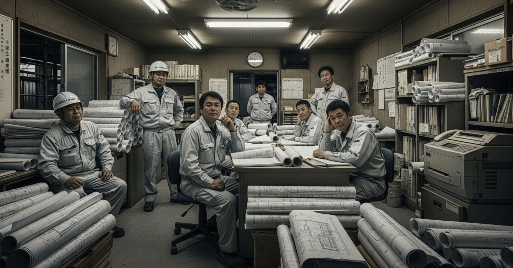 あなたの現場事務所を見渡してください。 そこには、丸められた大量の紙図面、隅でホコリをかぶったFAX機、そして毎朝の長い朝礼にうんざりした顔の職人たち…そんな光景が広がっていませんか?
